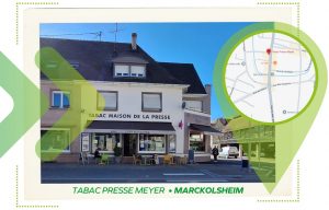 Vous pouvez vous rendre directement à Marckolsheim, auprès de notre revendeur partenaireLe Tabac Presse Meyer. En plus de son activité de tabac, l’établissement propose : presse, carterie, maroquinerie, Française des Jeux et la vente de titres de transport ELSA.